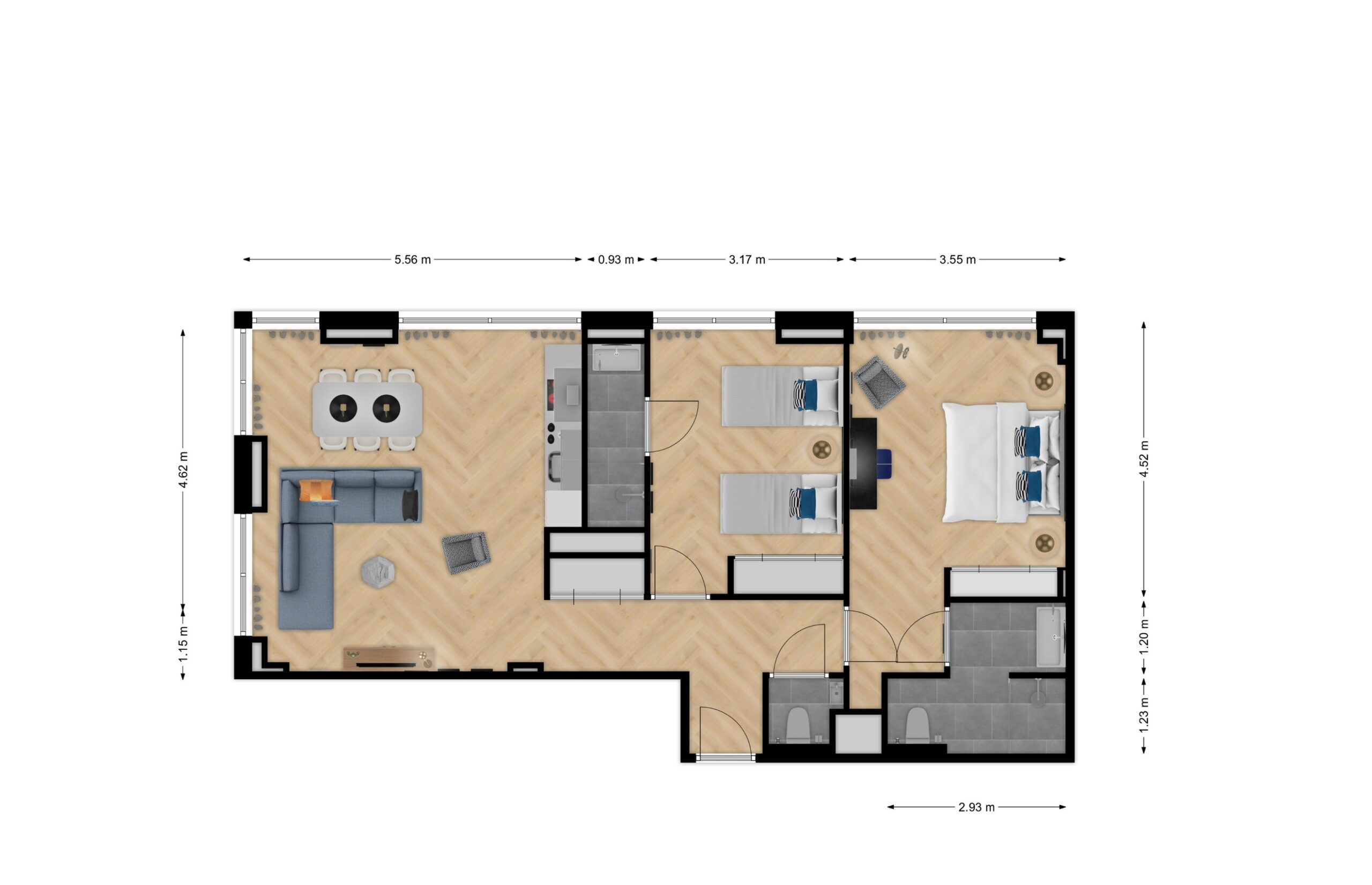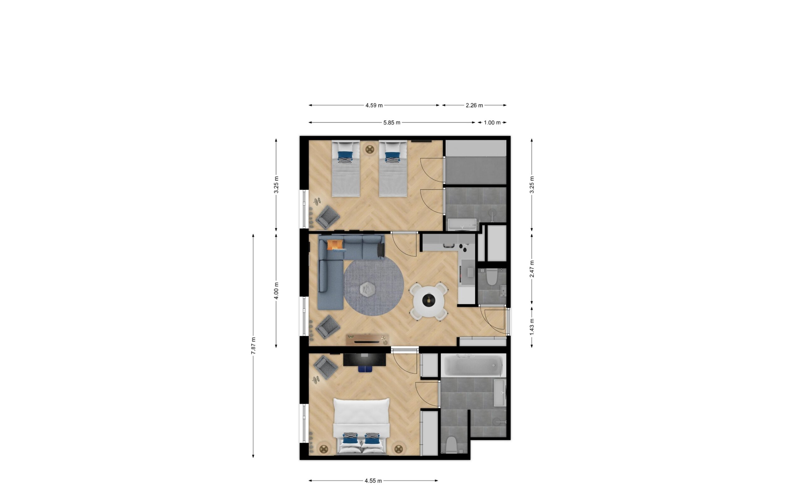 - Doppelbett, 2 Einzelbetten und Schlafsofa