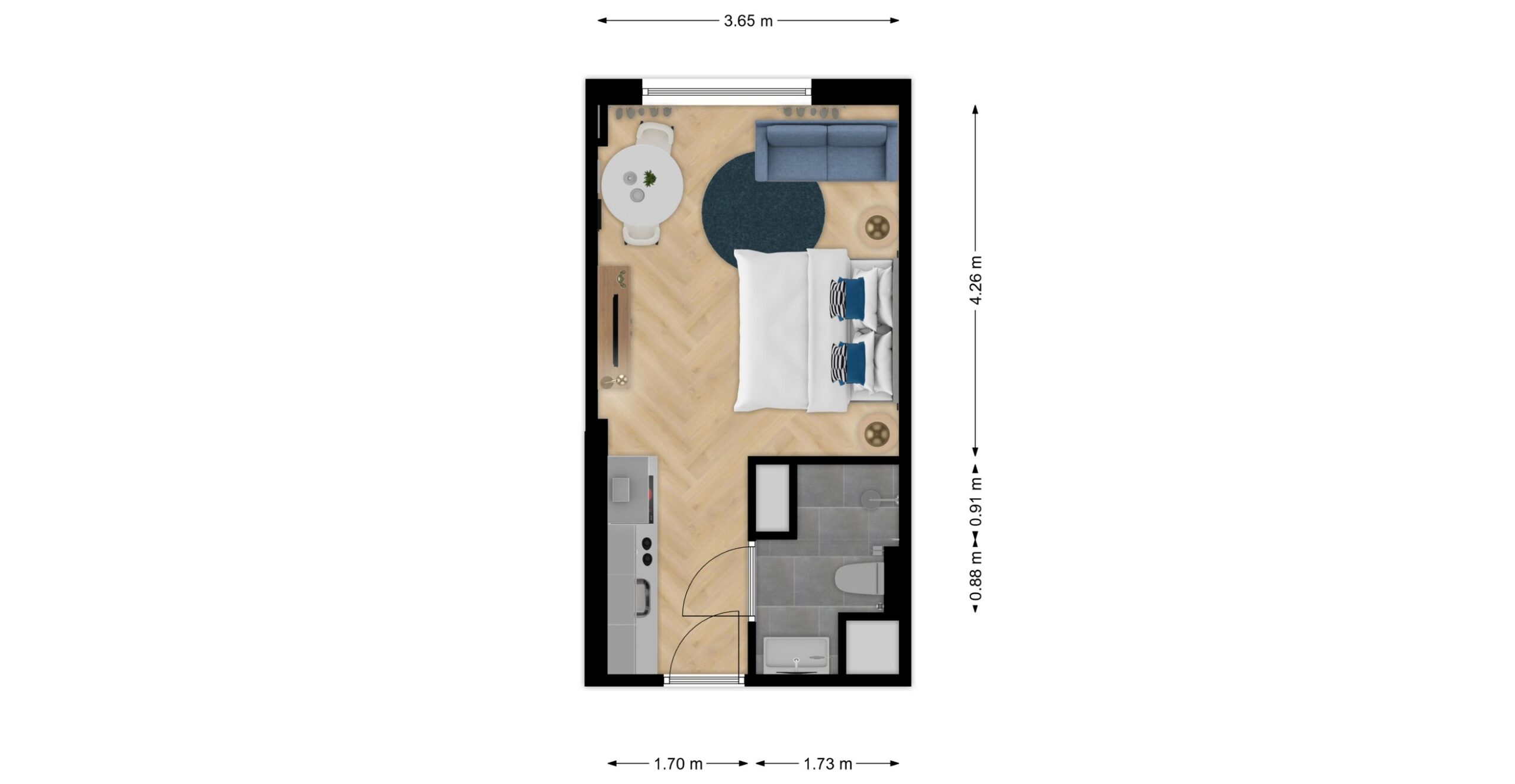 Ein Studio ist ein großer offener Raum, in dem sich alles befindet, was Sie brauchen. In einem Apartment sind der Schlaf- und Wohnbereich voneinander getrennt.