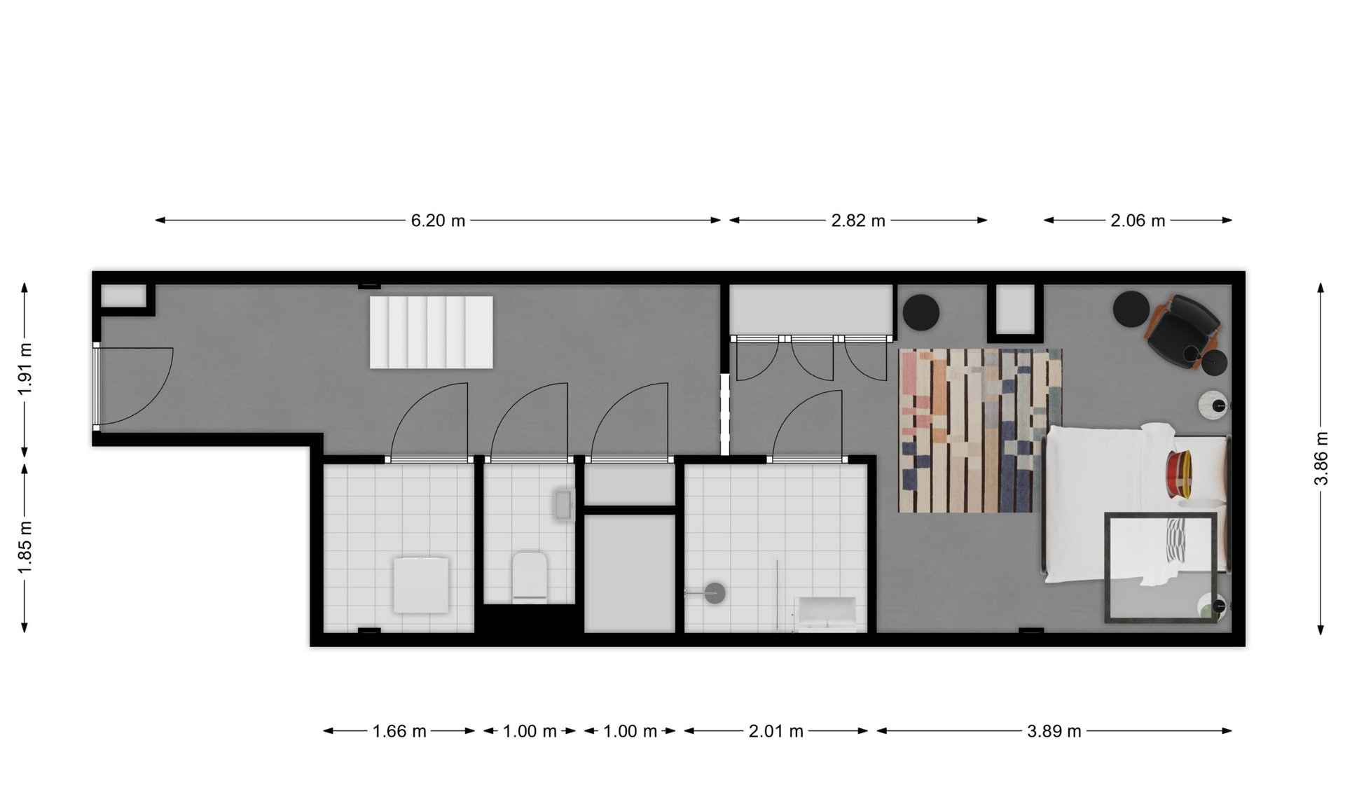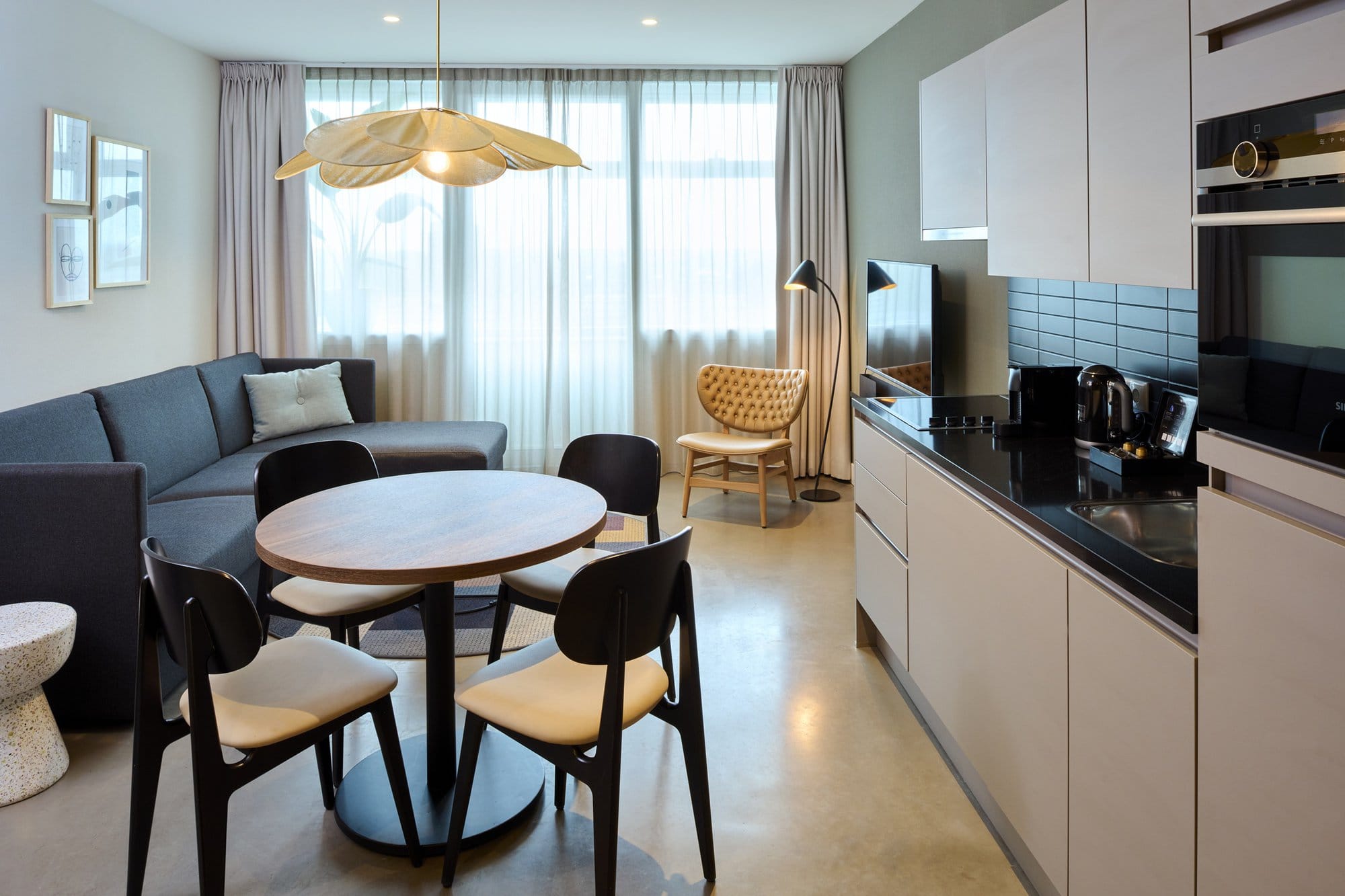 A spacious and thoughtfully designed studio, perfect for up to four guests. Equipped with all the essentials for a comfortable and convenient stay in one open space.