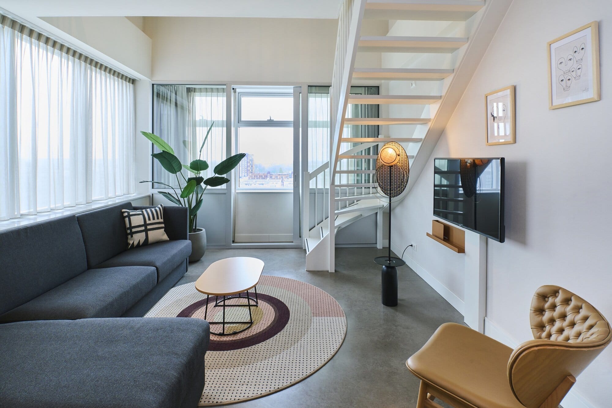 One apartment, two floors! Complete with private patio, this room type splits your living and sleeping areas from your kitchen, which is upstairs in a cosy loft